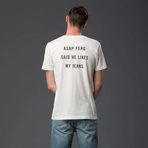 AGOLDE introduces an exclusive capsule collaboration with hip-hop recording artist A$AP FERG for Fall 2017, his second collection working with the premium denim label. This unisex logo tee is washed down for a vintage hand, with the AGOLDE logo reversed on the front, and a bold message from A$AP FERG at back. Worn with the AGOLDE x ASAP FERG Blade Jean.