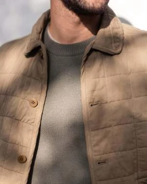 A cinnamon brown quilted canvas overcoat made in America. Pre-shrunk and machine-washable.