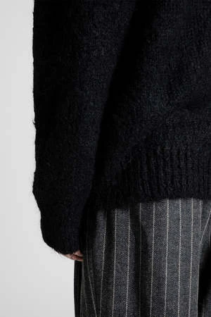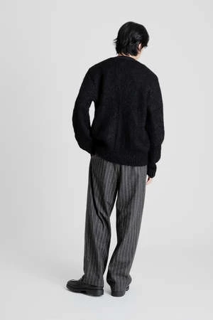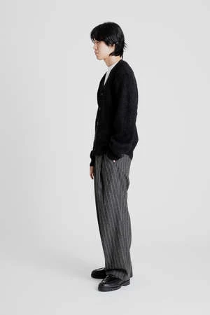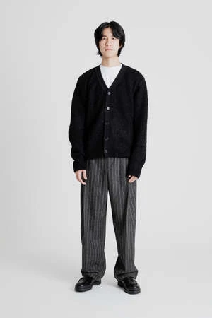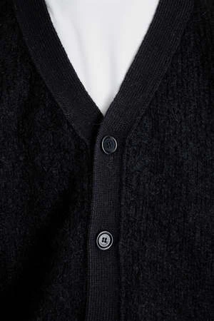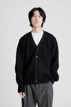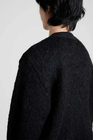 Every bit as cozy as its name suggests, the Grandpa Cardigan has the familiar feel of a family heirloom with a healthy dose of modern style. A cozy loose fit is complemented by a brushed kid mohair and nylon blend knit in a warm shade of brown that is very much like a refined version of something your grandpappy would have worn while puffing a stogie. Bursting with relaxed style, this is the perfect layering piece for cooler temps with a slight drop shoulder and elongated sleeves.