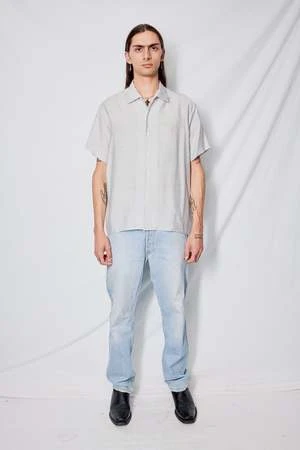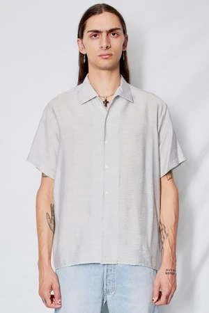 Stripe Rayon Camp Shirt from Assembly New York. Button front closure. Relaxed, boxy fit.