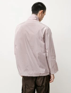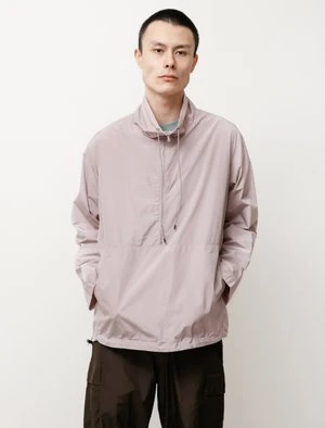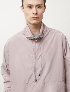 A relaxed fit zipped pullover in medium-weight nylon taffeta. The fabric utilizes a highly twisted yarn, resulting in an extremely fine weave with an incredibly smooth surface. Characterized by a firm touch while maintaining a relaxed drape and a subtle gloss. Constructed with a half-length Ri Ri zip front and a drawstring adjustable collar and bottom hem.
