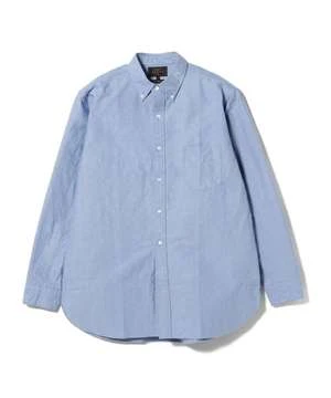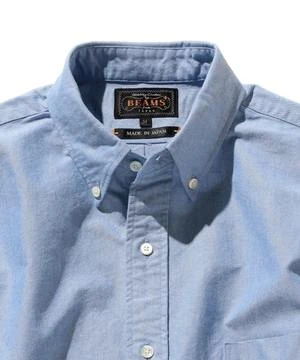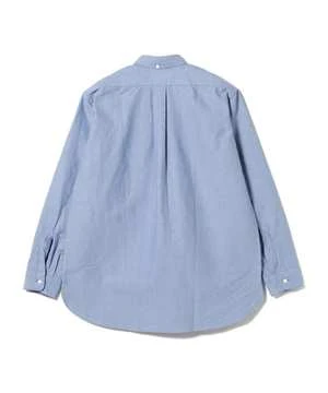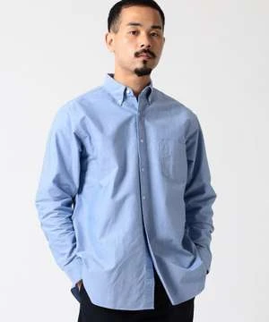 The BEAMS PLUS oxford shirt has a classic and solid feel that is different from traditional oxford fabric. Made from American cotton, this fabric has a dry touch and firmness, and is woven slowly and with more stitches than regular oxfords. The 6 buttons on the front, which still have a classic feel, have been adjusted to look well-balanced by shifting the button positions little by little. The long length and unique A-line silhouette provide a relaxed fit and silhouette. It has a modern fit while retaining a vintage feel.