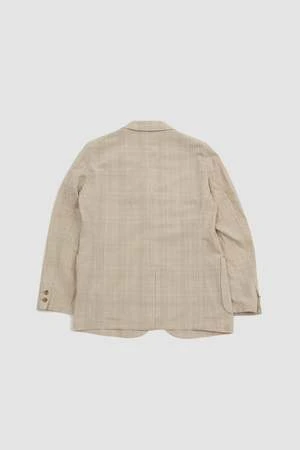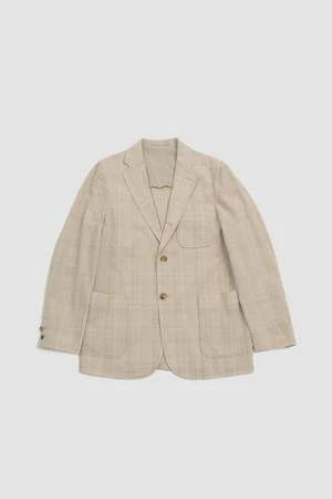 Beams PlusCotton Wool Linen Check 3 Button Comfort Jacket – Natural