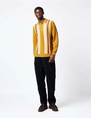 Beams PlusKnit Polo – Stripe/Mustard Yellow