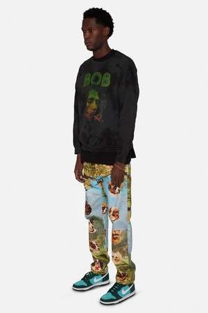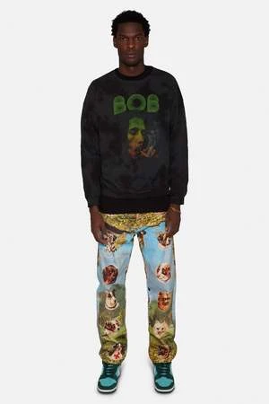 Blue&CreamBob Marley Distressed Crew Neck Sweatshirt – Black