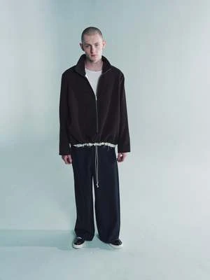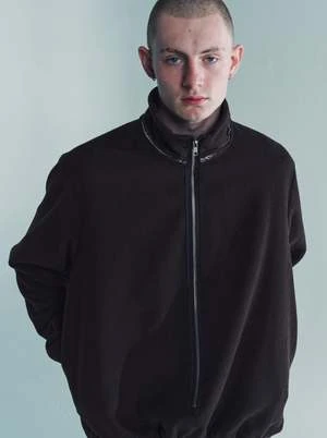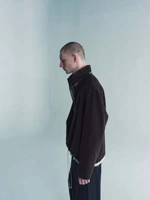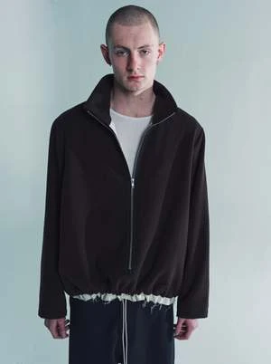 Zip anorak in light wool fleece with stand-up collar. Lined with soft cotton. Two zip pockets in sideseams. Bias tape along the zip. Raw details at the hem and neck line. Adjustable elastic cord at the bottom drawstring fastening. Electric wire on the zip puller.