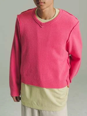 Camiel FortgensWool Frankenstein V Neck Sweater – Pink