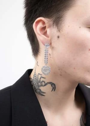 DEPARTMENTDEPARTMENTWhite Rhinestone And White Heart Long Earring – Multi
