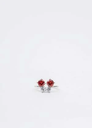 DEPARTMENTSilver Rhinestone Red Cherries Ring – Silver