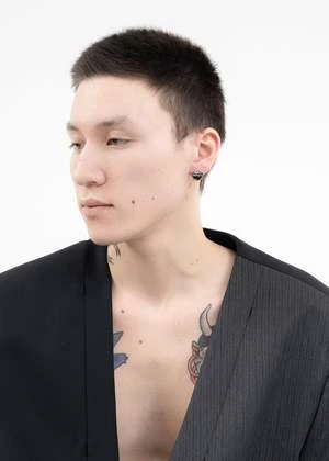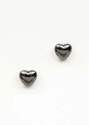 Mirror-finished black heart earring. Features tonal post-stud fastening.