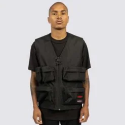– This wearable vest features four zip-fastening pockets, co-branded logos and a spine design on the back.
