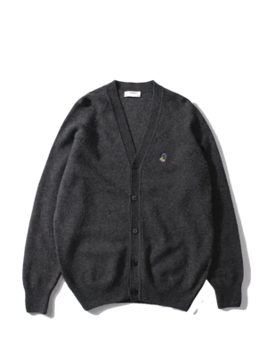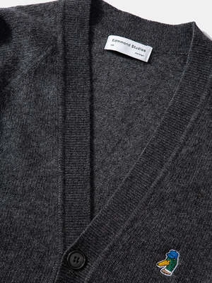 An essential for your wardrobe this winter. Plain grey melange cardigan with Edmmond Studio’s iconic duck logo on the left side.