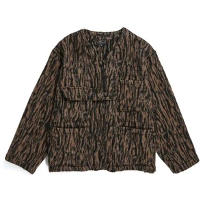 A brand new offering from Engineered Garments from this season comes in the form of this beautifully considered collarless piece. The Shooting Jacket takes cues from shooting jackets of the past with a large game pocket on the back. It features four front pockets and has a zip closure.