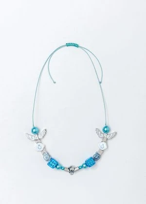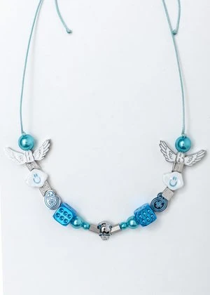 Leather strap necklace featuring smiley, dices, skull and cloud and paisley charms.