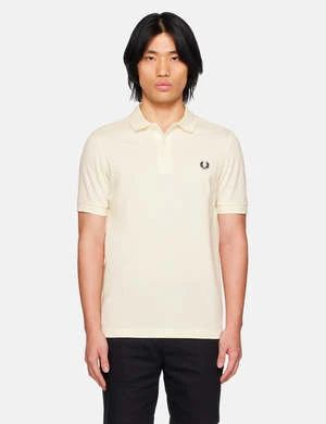 The Fred Perry Shirt is constructed from a classic Ecru cotton piqu with Navy Blue embroidered logo, in a contemporary fit.