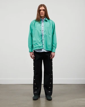 The WR Polartec Overshirt from gr10k is a perfect transeasonal layering jacket. Shown here in Menthol, an aqua green colour, the lightweight jacket shape is based on a 90s workwear over shirt and is lined with insulating Polartec. It features snap button closure along the front and cuffs, as well as layered side pockets. Crafted from 100% PES (78% recycled). Manufactured in Italy.