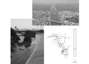 The LA River exemplifies the precarious relation between nature and man. After a series of disastrous floods, the river was channelized in the 1930s by The Unites States Army Corps of Engineers. The once free-flowing river now exists as a fully concrete gray channel.