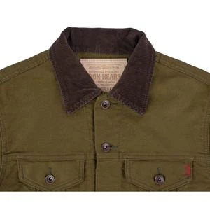 Iron Heart modified take on the classic Type III trucker jacket – offering a slightly longer than traditional body, with the addition of side handwarmer pockets – constructed from our 12oz whipcord. Often utilised in military wear, the tightly woven cotton twill of whipcord is renowned for its hardwearing properties, offering excellent scratch and wind resistance. Lightweight and durable, this version features the addition of a corduroy-lined collar, cuffs and pockets for added comfort.