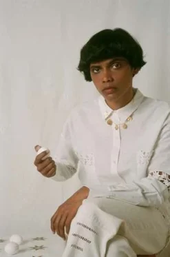 Ann AndelmanLogo Bracelet – White Pearl/Silver