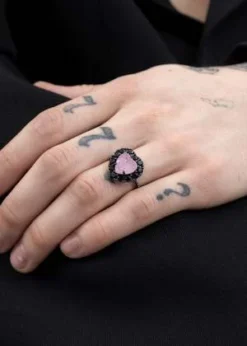 DEPARTMENTBlack Rhinestone And Pink Heart Ring – Silver