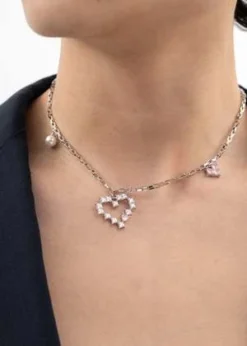 DEPARTMENTAnd Rhinestone Hearts Necklace – Silver/ Pearl