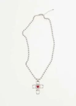 DEPARTMENTRed And Silver Hearts Cross Necklace – Red/Silver