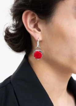 DEPARTMENTSilver And Red Velvet Rose Earring -Single
