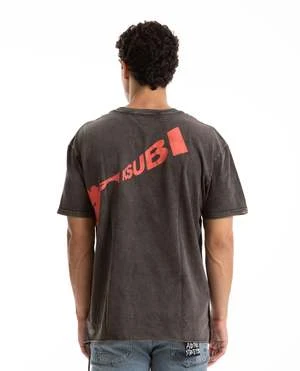 Angel Biggie Tee in charcoal by Ksubi. This oversized fit, short sleeve t-shirt is cut with a raw-cut back hem, a reverse overlocked side seam and our signature rats tail detail. Made from a premium cotton jersey in an overdyed faded pink with an aged wash, this tee is finished with signature t-box and XL 4x 4 digital prints to match.
