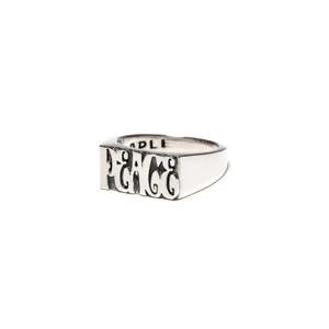 The Word Peace ring features a slim design, silver 925 construction. MAPLE hallmarking inside.