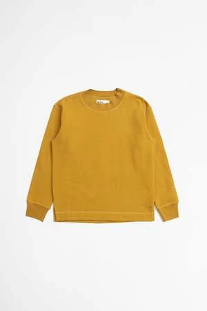 Lightweight jersey raglan crew. Relaxed fit. Contrast rib on neck and cuff. Side split hem with herringbone tape detailing. Overlock stitch detailing on seams. Half moon stitch detailing on back neck.