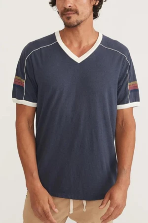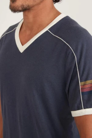Absurd softness meets vintage design with this varsity-inspired tee. It’s got printed sleeves, shoulder details, and a slight v-neck to keep things casual. (Varsity-level athleticism not included.)
