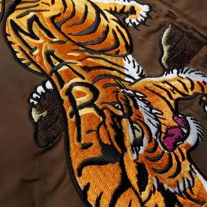 Premium coaches jacket with large embroidered tiger artwork on the front and a ton of details through out. Peep that “M” arch on the back 😉