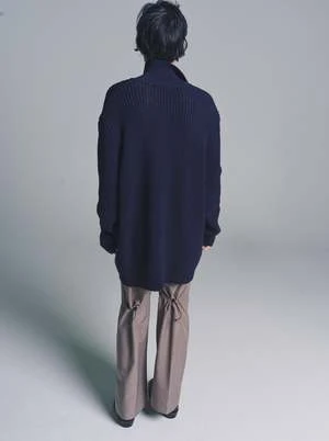 Our Big Piquet in Navy Chunky Cotton Rib. Produced in a heavy cotton ribbed knit, the men’s Big Piquet has a relaxed, oversized fit and features a knit collar, ribbed detailing and mother of pearl buttons. This garment is manufactured using a carefully sourced yarn. The natural characteristics of the yarn, combined with the construction of the knit allows the garment to expand when worn. The garment shall be shaped by its wearer and naturally distress over time to finish the design process. To help keep the integrity of the garment please store the garment folded.
