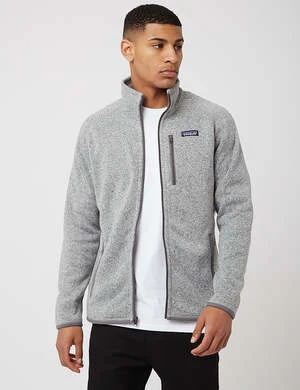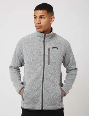 The Patagonia Better Sweater Jacket in Stonewash Grey from the Patagonia Spring/Summer outwear collection. A warm and low-bulk jacket with full-zip with zip-through, stand-up collar and raglan sleeves for mobility. Zippered left-chest pocket, two zippered hand warmer pockets and shape-holding micro polyester jersey trim at cuffs and hem resists abrasion. The flat-seam construction reduces bulk and helps eliminate seam chafe.
