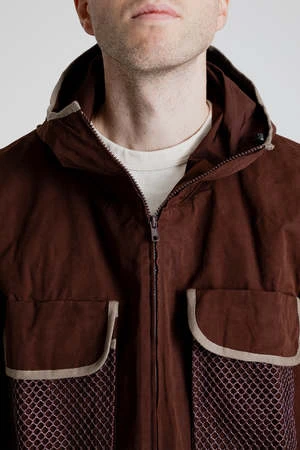 S.K. Manor Hill never fails to surprise us with their wide-ranging influences, this time borrowing from fishermen’s apparel for this supremely cool, streetwear-ified version of a wading jacket. The silhouette is slightly cropped with a boxy, oversized fit and a two-way zipper leading up to a large hood with lots of neck protection for enduring nasty weather. This impressive piece is defined by two massive triple-entry pockets emblazoned right across the front, as well as pleated sleeves with velcro cuffs for a classic outdoorsy look.