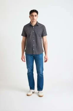 DUSHYANT.Hand Printed The Sheril Short Sleeve Shirt – Navy Motif