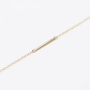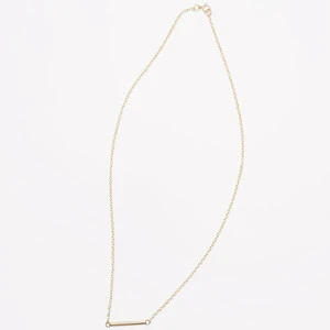 This versatile 9kt gold necklace consists of a trace chain and a single gold bar that sits on or just below the collar bone. The slender chain and simple detail makes this an essential piece of jewellery to elevate the everyday.