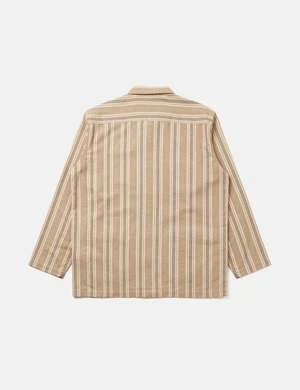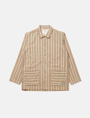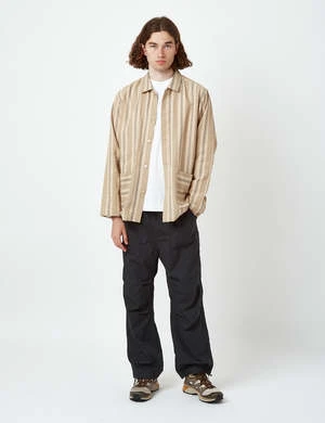 The Cotton Linen Dobby Stripe Jacket from Snow Peak is a lightweight, casual shirt jacket crafted from cotton and linen on a dobby loom for a unique feel and pattern.