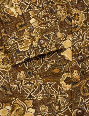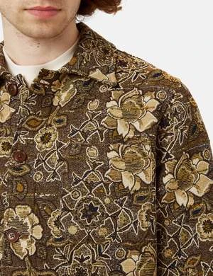 The Flower Jacket from Sunflower is a casual workwear inspired jacket with a jacquard tapestry inspired floral pattern.