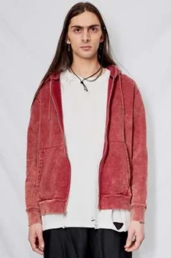 AssemblyStonewashed Cotton Zip Hoodie – Oxblood