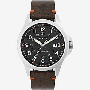 Featuring a solar-powered movement that lasts up to 4 months and eliminates the need for battery changes, our Field Post 41 Solar is a military-inspired outdoor watch made to accompany you anywhere. It also boasts an anti-reflective sapphire crystal, 100-meter water resistance rating and a screw-down case back and crown in a perfect 41mm case profile. And thanks to the luminescent hands and dial markings, the sun works overtime to make this watch legible in the dark. Equipped with a comfortable brown eco-friendly leather strap and crafted to last this watch can stay on your wrist all the way to the top.