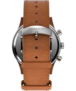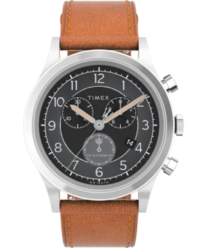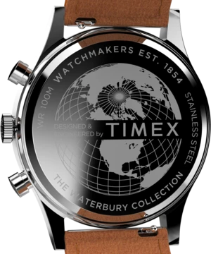 Featuring a classic charcoal gray dial with bold accents and a neutral brown leather strap, our Waterbury Traditional Chronograph unites all of these elements into something that delivers function just as well as form. The watch has three sub-dialschronograph minutes and hours, as well as running secondslaid out in a brushed inner circle to provide depth and detail. It also features an ever-practical date display window situated at four oclock, affording you some extra functionality as you wear this watch for years to come.
