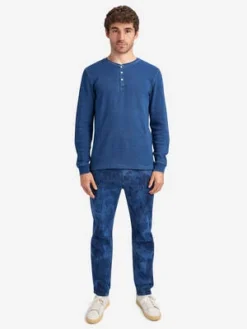 O.N.SCourt Henley L S Tee – Lt Tie Wash Indigo/Mid Indigo