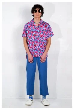 Graphia New YorkDesi Short Sleeve Camp Collar Shirt – Blue Ukiyoe Hibiscus Print